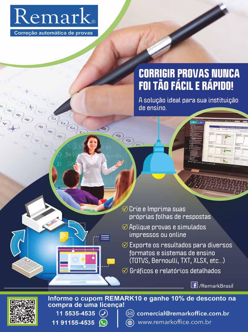 Nesse sentido, os renomados palestran tes que participaram, dentre eles Mario Sergio Cortella, Rossieli Soares, Vera Cabral, Monja Coen, Christian Dunker, Reinaldo Domingos, Célia Godoy, Au gusto Cury, Leandro Karnal, entre tan tos/as outros/as, trouxeram aponta mentos e análises de diversas áreas para contribuir com o aperfeiçoamento das instituições de ensino.