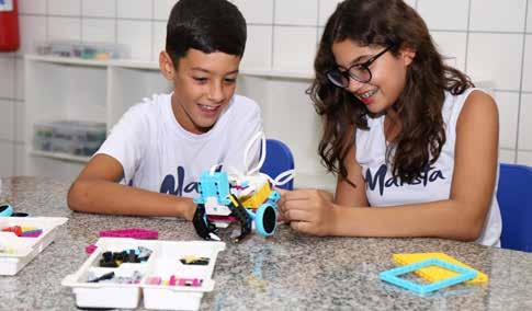 D e acordo com a diretora, a escola tem parceria com um programa de robótica de uma empresa especializada na área, com um tempo na grade destinado ao tema para os alunos da Educação Infantil e todo o Ensino Fundamental. O programa se utiliza de conjuntos da LEGO Edu cation, possibilitando que alunos resolvam problemas em equipe e criem robôs. “As aulas despertam muito interesse e costumam ser os momentos de m aior empolgação entre os alunos, pelas possibilidades de trocas divertidas e de aprendizados. Além disso, ao final do ano, temos um evento voltado para Ciência e Tecnologia no qual os alunos apresentam seus projetos desenvolvidos para t o da a comunidade escolar, o que gera
