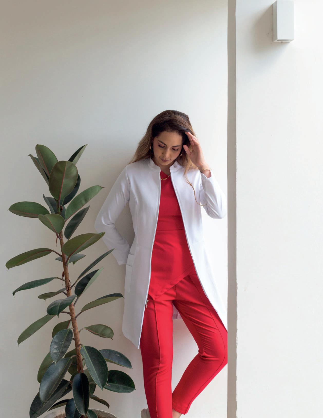 D: Eres una mujer muy elegante y fashion, cuéntanos sobre Sowl. M: Me encanta el diseño y la moda, hace unos meses lancé una línea de uniformes médicos llamada Sowl, las prendas tienen la finalidad de permitirte trabajar con comodidad y que tambien te veas increíble mientras lo haces.