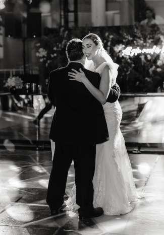 Minutos después de haber terminado la ceremonia y de la sesión de felicitaciones, la pareja se dirigió al centro de la pista junto con sus amigos para oficialmente empezar con la fiesta.