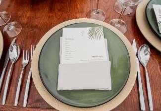 Tu venue también juega un papel muy importante en la selección del tabletop ya que si se cuenta con un lugar rico en vegetación, jugar con vajillas con acabado en madera es más sencillo. Si el estilo ideal para tu boda es el orgánico, te recomendamos elegir una espacio outdoors para que tu tabletop se sume al mood de tu celebración.