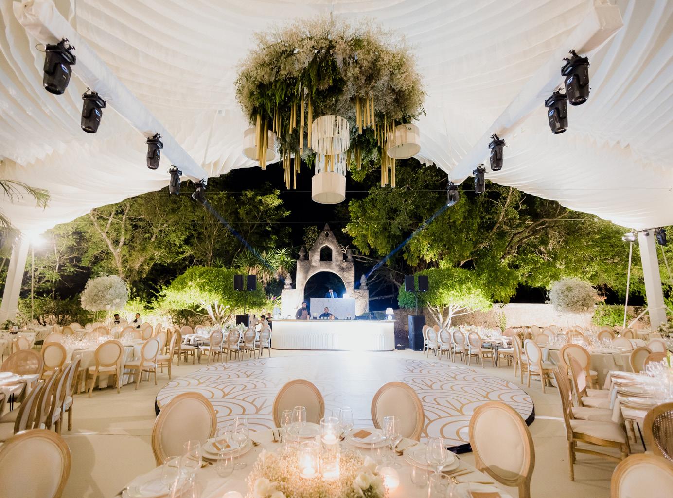 mobiliario y, por supuesto, la iluminación. Uno de los detalles que más llamó la atención de los asistentes fue una estructura colocada encima de la pista de baile, con lámparas en forma de esfera que subían y bajan a la vez que cambiaban de color.