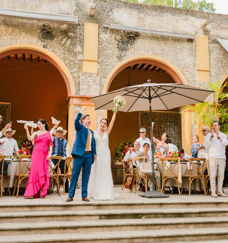 Son una pareja que sabía que para su gran día querían tener una atmosfera cómoda y hogareña, pero con estilo, y mucha buena vibra. La celebración fue totalmente intima, llena de detalles por cada esquina de la hacienda el cual a la llegada te recibían unos cubanos con un cocktails de bienvenida.