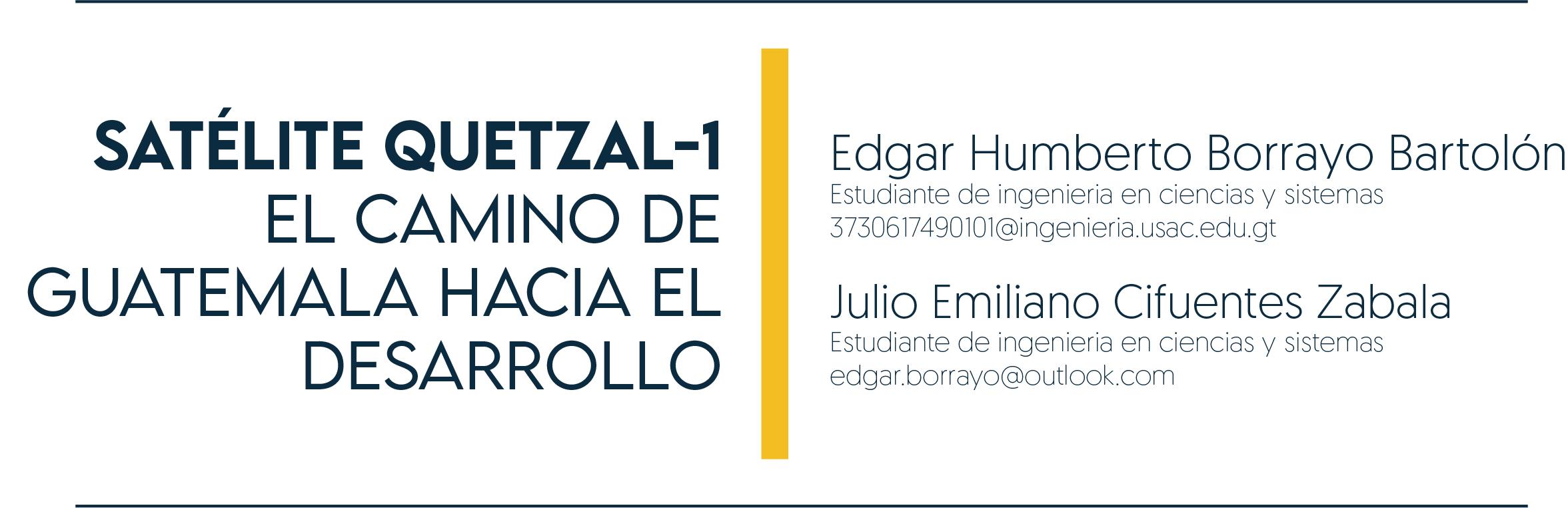 Guatemala,unpaísenvíasdedesarrollo,por elloquecadaavancetecnológicoqueseconsigue esunlogrocelebradoportodaslascomunidades involucradasenlatecnología.Enelaño2020ocurrió uneventoquemuchaspersonasnuncalohubieran imaginado.Guatemalalanzóelprimersatélite funcionalalespacioconocidooficialmentecomo Quetzal‐1utilizadoparadiversosfines,comolas telecomunicacionesylapredicciónmeteorológica; dandoinicioanuevosretos,oportunidadesyun enormepotencialdecrecimientoeneldesarrollo tecnológicodelpaís.