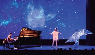 LUDOVICO MUSICAL EXPERIENCE es un espectáculo innovador de piano teatralizado, con música, voz, danza y una proyección sincronizada, donde el alma del pianista (Cristina Gatell) y su voz interior (Javier Dut) interactúan con el público creando una atmósfera única, íntima y mágica.