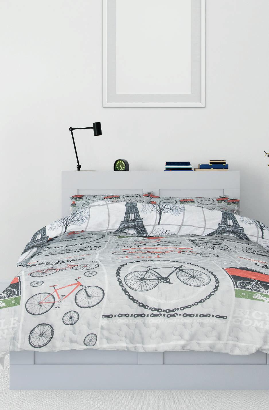 REVERSIBLE BICICLETAS PRECIO ₡ 19500 MEDIDAS 175cm de ancho por 225cm de largo. 1 Funda CONFECCIÓN Confeccionado en 60% algodón y 40% polyester CÓDIGO: 483A EDREDÓN INDIVIDUAL 107