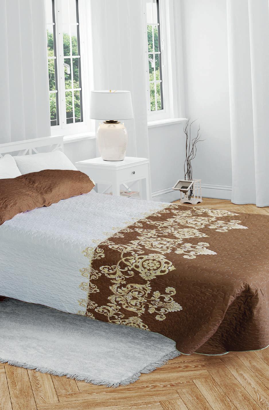 Mocca COD. 482A Edredón matrimonial Confeccionada en 60% algódon y 40% polyester Medidas Edredón Matrimonial 230cm de ancho por 220cm de largo 2 fundas: 68x47cm Reversible 104