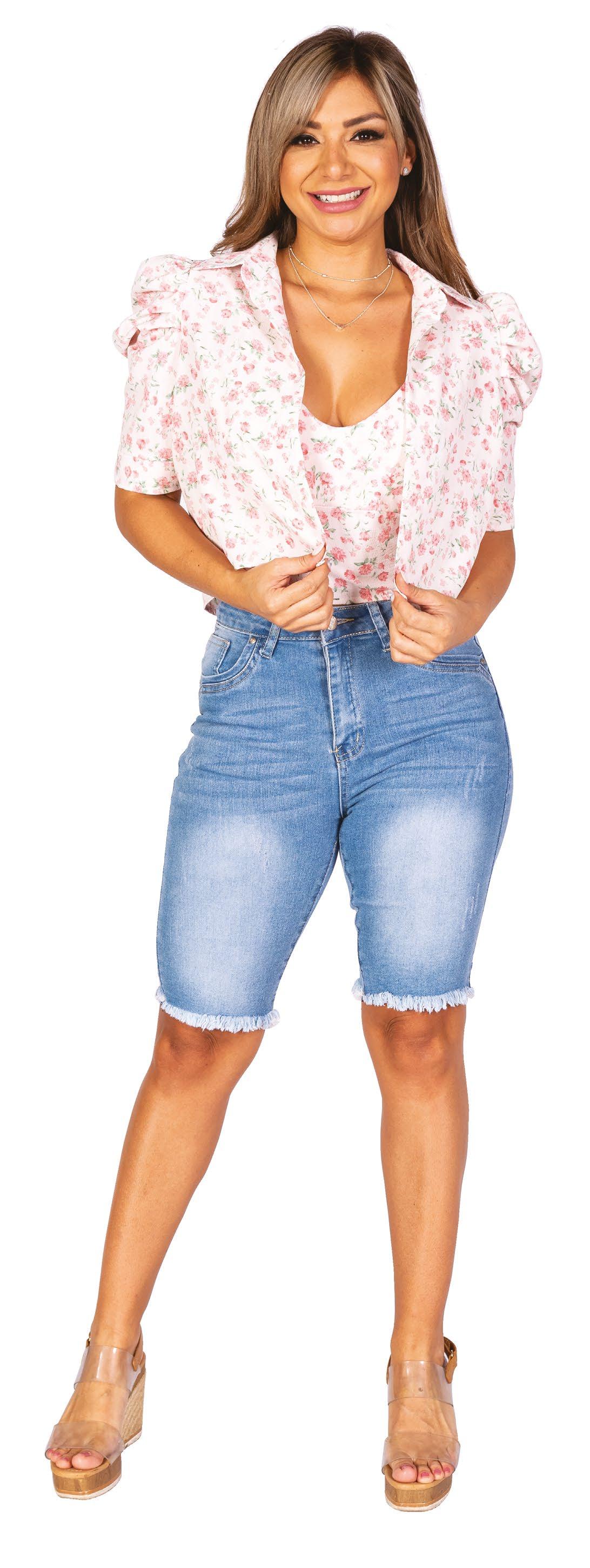 Confeccionado en Docoma Estampada con flores T: S - M - L - XL ¢10.800 Detalle: COD 872E BLUSA CON TOP C: Rosado con fucsia A. B. Confeccionado Mezclilla Stretch T: 3/4,5/6,7/8,9/10,11/12,13/14,/15/16 ¢16.800 COD 877E MANGANO DE DAMA C: Celeste 20