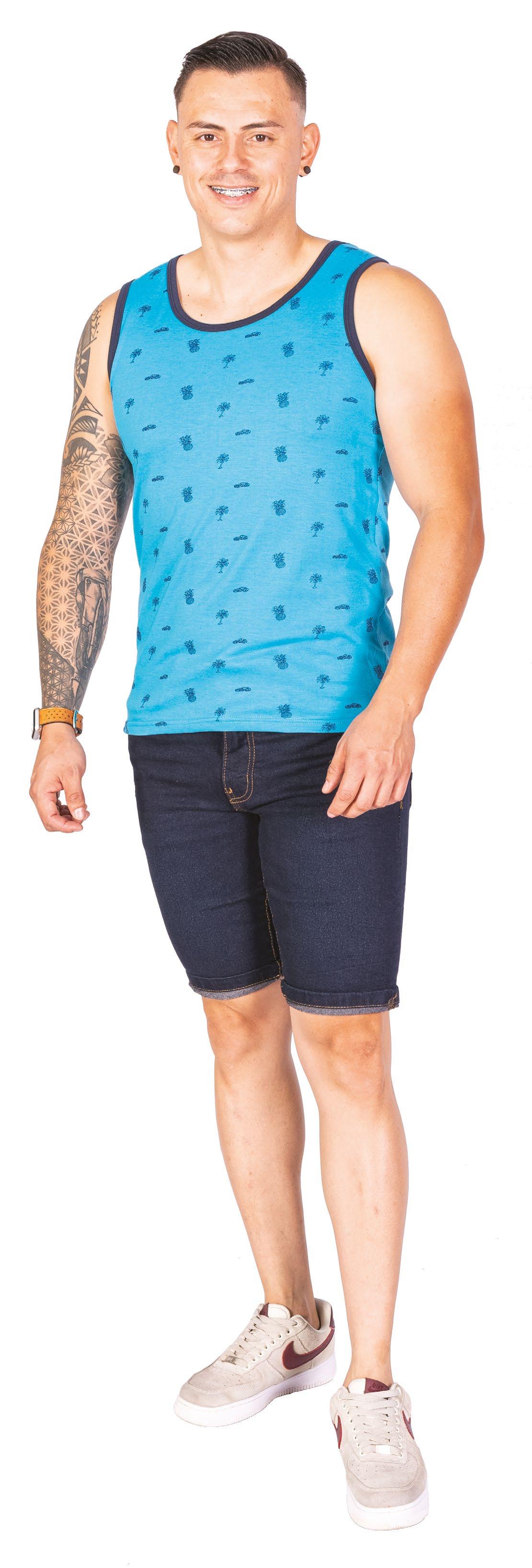 Confeccionado en 100% Algodón T: S - M - L -XL ¢6.800 COD 597E CAMISETA PLAYERA ESTAMPADA CON PALMERAS C: Celeste ¢13.000 C: Azul oscuro Confeccionado en mezclilla stretch T: 30,32,34,36,38 COD 505E SHORT CABALLERO 68