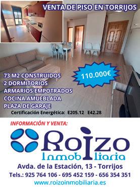 Se vende duplex de 2 plantas en Rielves (Toledo), 3 dormitorios, 2 baños, cocina amueblada y garaje. 105.000€