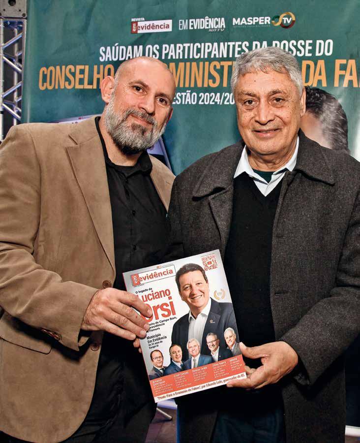 Diretor da Revista Em Evidência e do Programa Em Evidência na TV, Lucio Vaz; o apresentador do Cadeira Cativa (também na Masper TV); e o CEO do Grupo Sollos, Márcio Espindola