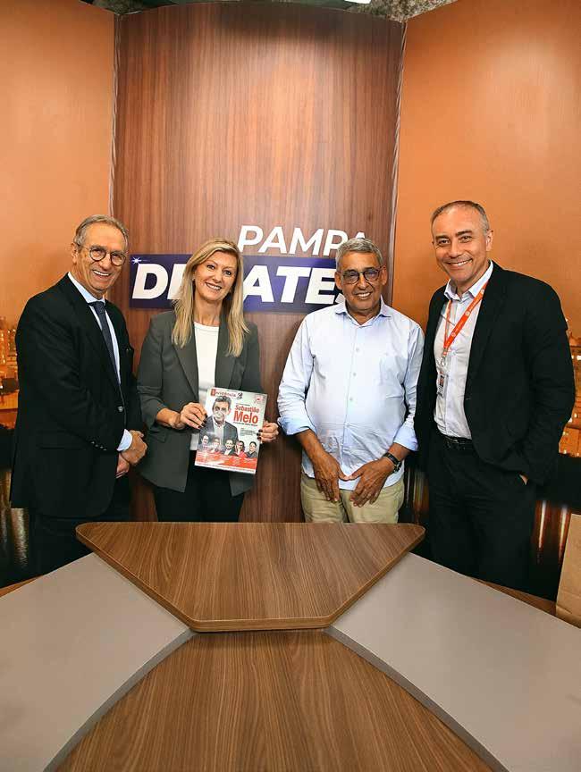 A entrevista do prefeito da capital de todos os gaúchos, no programa Pampa Debates. Na foto, Paulo Sérgio Pinto; a vice-prefeita de Porto Alegre, Betina Worm; o prefeito de Porto Alegre, Sebastião Melo; e o presidente da Rede Pampa de Comunicação, Alexandre Gadret