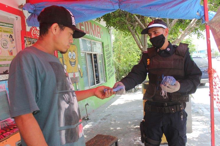 Flores Carrales refirió que en Seguridad y Protección se entregarán cubrebocas a toda aquella persona en la calle que no lo tenga, habrá filtros en mercados, se otorgará orientación con el programa de “Mediación ante conflictos laborales”, se ofrecerá un curso en línea para control de la violencia y se aplicarán sanciones a reincidentes de fiestas en