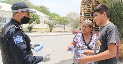 Hoy, los elementos entregaron cubrebocas en zonas de mayor afluencia, como la Estación del Metro Sendero y la Avenida Raúl Salinas, y diversos sectores como La Alianza Real y San Miguel Residencial.
