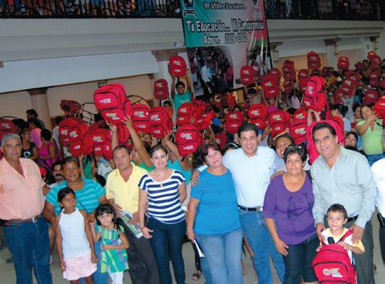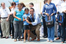 de manos del alcalde de Juárez, luis alfredo garcía garza, cerca de 15 mil alumnos recibieron una mochila con útiles escolares, entre los que se encontraban, tijeras, colores, libretas, lápices, plumas y diccionario.