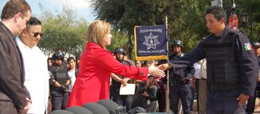 LA ALCALDESA DESEA QUE los policías den su máximo esfuerzo para cuidar la integridad y patrimonio de las familias de Guadalupe.
