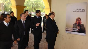AUTORIDADES DE LA CTAINL y del Municipio de Monterrey, recorrieron el área donde se exponen las obras de transparencia.