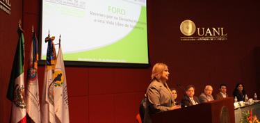 La inauguración del Foro “Jóvenes por su Derecho Humano a una Vida Libre de Violencia”, arrancó las actividades de la Semana Estatal de los Derechos Humanos 2011: Nuevo León Unido en Acción por los Derechos Humanos. Con sede en la Biblioteca Raúl Rangel Frías de la Universidad Autónoma de Nuevo León, se tuvo la inauguración del Foro que se realizó en presencia de la Presidenta de la Comisión Estatal de Derechos Humanos, Minerva Martínez Garza; el Subsecretario de Desarrollo Político de la Secretaría General de Gobierno, Felipe González Alaníz; Filiberto de la Garza Ortiz, Secretario de Asuntos Universitarios en representación del Rector de la UANL, y el Antropólogo José Cerda Zepeda, Subdelegado de la Comisión Nacional para el Desarrollo los Pueblos Indígenas.