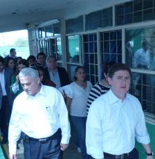 RODRIGO MEDINA Y DEMÁS FUNCIONARIOS estatales y municipales, recorrieron las instalaciones de la escuela donde se realizó el evento.