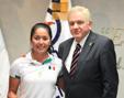 El Rector de la UANL elogió a Mariana Avitia, alumna de la Facultad de Ciencias de la Comunicación que consiguió su boleto a los trigésimos Juegos Olímpicos de Verano, en la disciplina de tiro con arco, por equipo.