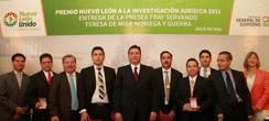 Los cinco profesionales en el tema fueron en la categoría de Investigación Profesional, José Luis Pecina Alcalá, con su trabajo “La Condena Condicional en Nuevo León”; y José Manuel Cardona Monreal, con la investigación “Reserva Material de Ley. Subprincipio de Legalidad en el Derecho Administrativo y FiscalTributario Mexicano”; quienes obtuvieron el primero y el segundo lugar respectivamente.