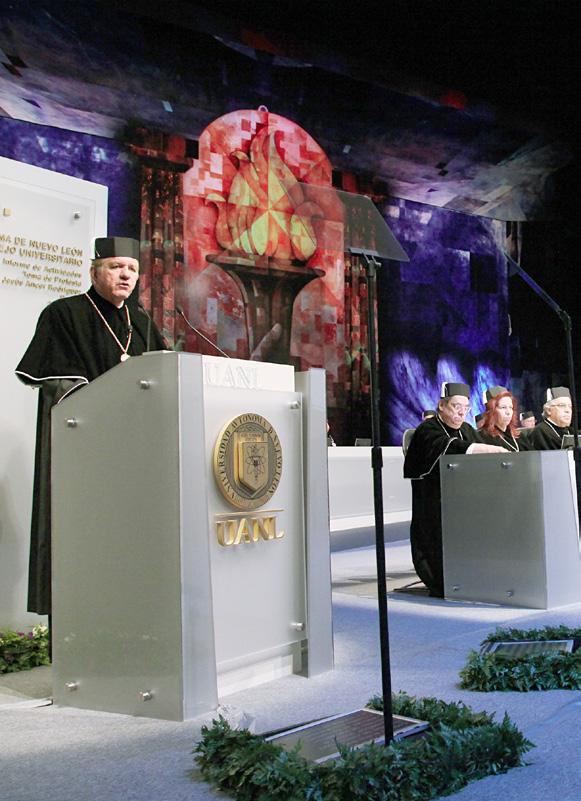 Agradeció de manera especial al Dr. Jesús Ancer, Rector de la UANL, por el apoyo que ha brindado a la Facultad, aseguró estar contento y satisfecho con el crecimiento de ésta, que ha tenido un auge muy visible recientemente. Mencionó la firma del Consejo Consultivo Internacional ya que aseguró que “por primera vez tenemos gente de otros países que están volteando a ver los programas de maestría y doctorados de FARQ y que están pensando en convertirse en estudiantes nuestros”.