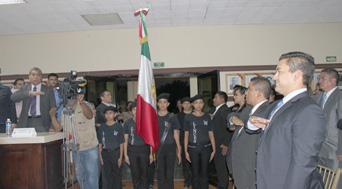 AUTORIDADES MUNICIPALES, ESTATALES y militares, dieron el banderazo para la incorporación de diez nuevas unidades de la Policía.