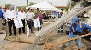 Ante vecinos y acompañado de autoridades del Instituto Federal Electoral y representantes de Partidos Políticos, el Alcalde Pedro Salgado Almaguer, dio el banderazo de inicio al vaciado del concreto para la construcción de nuevas áreas con pavimento en la plaza del sector.