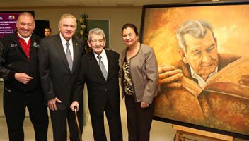 En el marco del segundo aniversario de la Cátedra Historia del Noreste “Israel Cavazos Garza”, que tiene como sede la Facultad de Filosofía y Letras, se rindió homenaje al historiador, catedrático y humanista nuevoleonés, con la develación de un retrato elaborado por el pintor Sergio Villarreal.