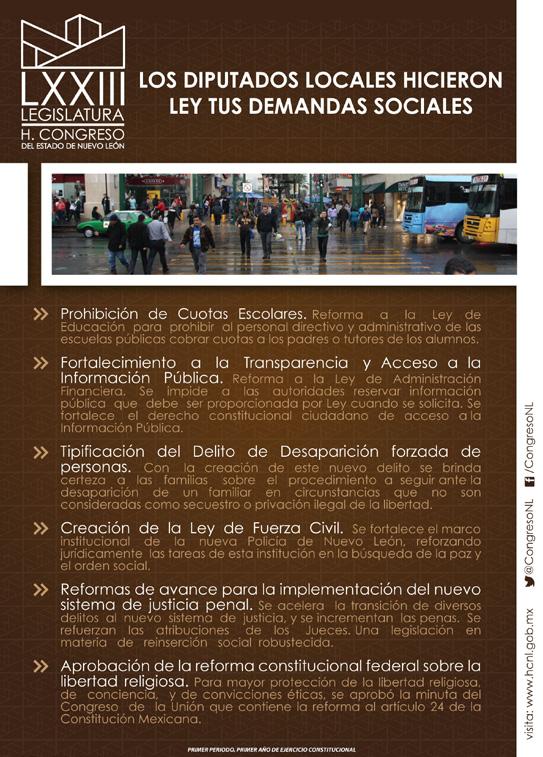 de forma profesional, en forma dedica da y dándole una atención profesional a la ciudadanía en ese sentido”, dijo. En cuanto a iniciativas para el Con greso local, la CTAINL presentará en el mes de febrero una Ley de Archivo y en el mes de marzo o abril se insis tirá en que los partidos políticos sean sujetos obligados de la Ley de Trans parencia.