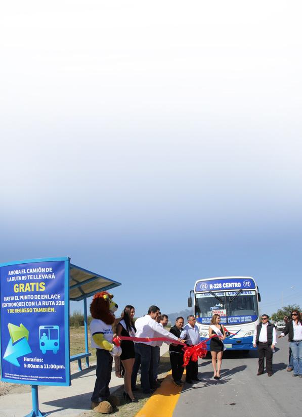 Durante el evento el Alcalde Rodolfo Ambriz Oviedo, fue acompañado por el Secretario de Desarrollo Sustentable, Rafael Arroyo Solís; el Secretario de Desarrollo Social, Félix Salinas Morales; el Gerente Comercial de VIDUSA, Marcos Salazar; el representante de la Constructora Garza Ponce, Mario Trujillo; el representante de Terra Regia, Melesio Izquierdo; la representante de la Ruta 89, Norma Cuevas, y el representante de la Ruta 228, Pedro Almanza Uresti, quienes realizaron un recorrido a bordo de la “Ruta de Transporte Gratis”.