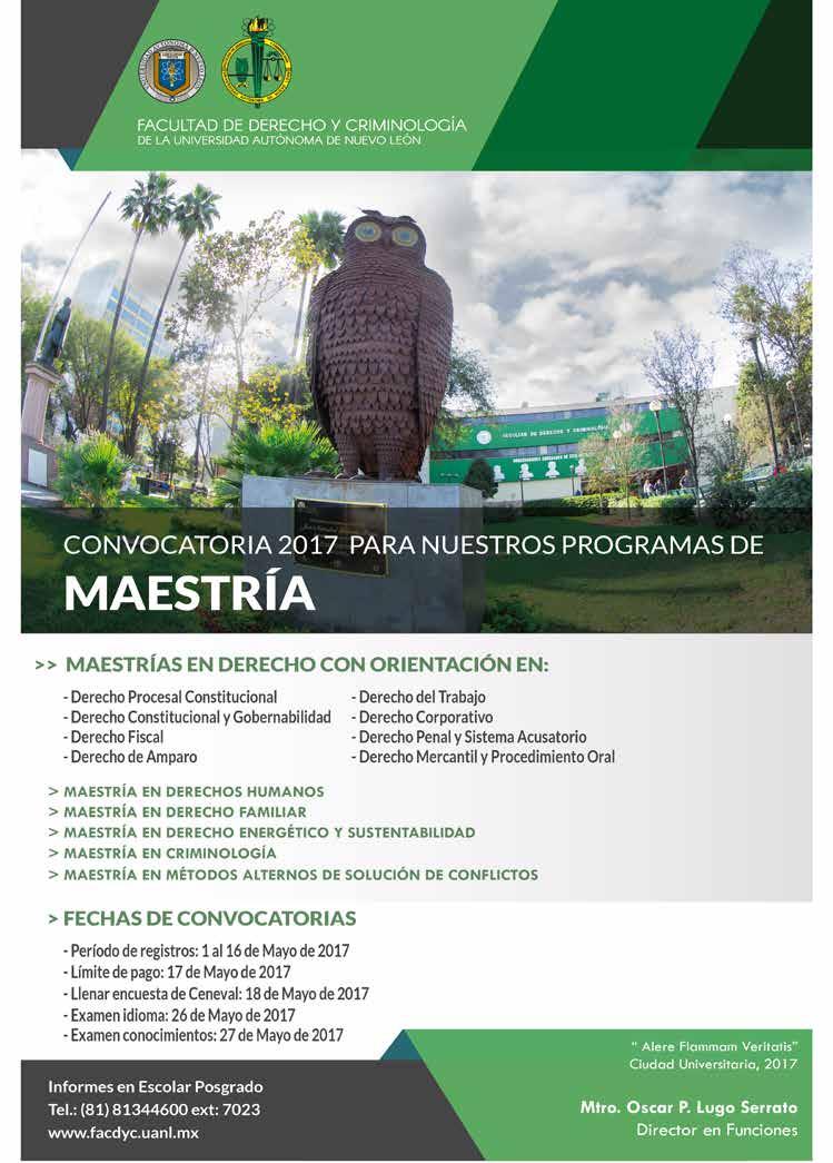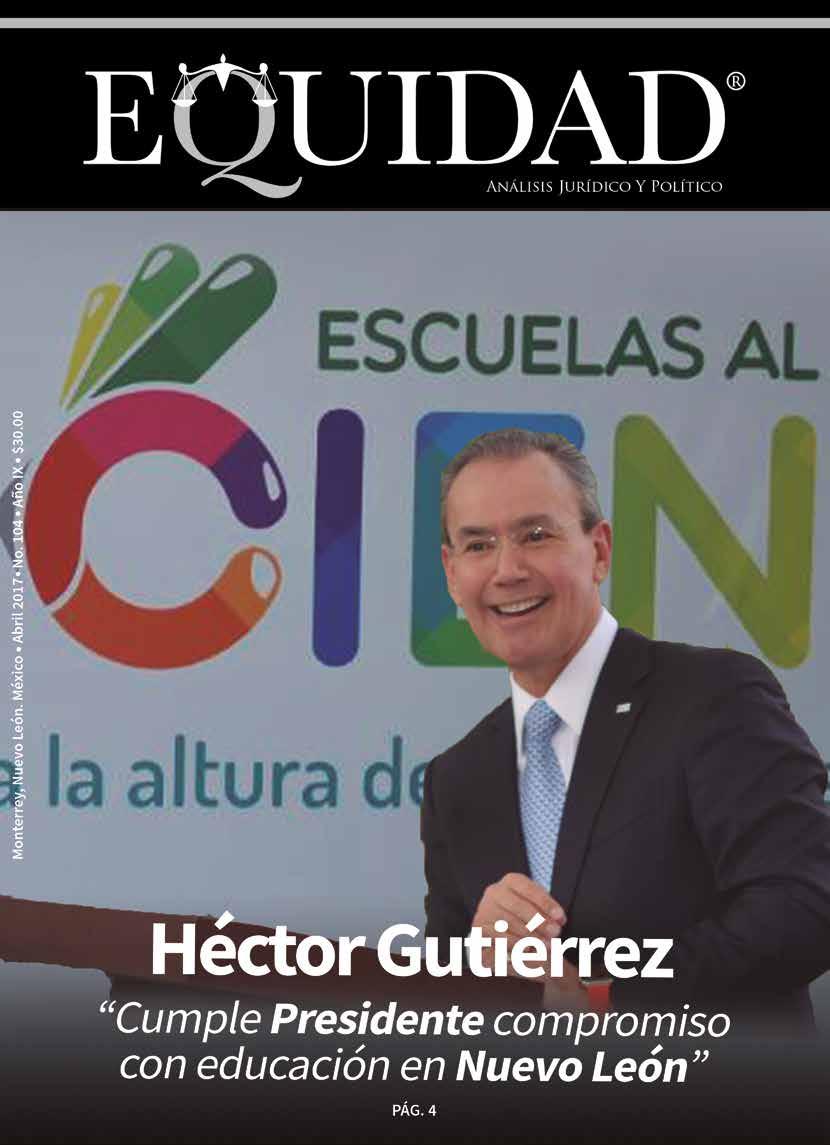 EQUIDAD ANÁLISIS JURÍDICO Y POLÍTICO, Revista Mensual. ABRIL 2017. Editor responsable: RAÚL CARRIZALES GONZÁLEZ. Certificado de Reserva de Derechos al Uso Exclusivo del Título EQUIDAD ANÁLISIS JURÍDICO Y POLÍTICO No. 04-2012-041914200700-102, otorgado por el Instituto Nacional del Derecho de Autor, de fecha 19 de abril del 2012 (vigente). Número de Certificado de Licitud de Título y Contenido 16268, expedido por la Comisión Calificadora de Publicaciones y Revistas Ilustradas de la Secretaría de Gobernación, de fecha 14 de Julio del 2014. EQUIDAD, es Marca Registrada con el número 1374245, de fecha 7 de Junio del 2013, expedido por el Instituto Mexicano de la Propiedad Industrial. Domicilio de la publicación: Platón Sánchez 711 Norte, Col. Centro, Monterrey, N. L. C.P. 64000. Impreso por Facsímil Arte Gráfico, S.A. de C.V., con domicilio en Félix U. Gómez No. 2818 Norte. Col. Cementos, Monterrey, N. L. C.P. 64520. Distribuidor: RAÚL CARRIZALES GONZÁLEZ (mismo domicilio de publicación). Tels. 1771-5141 y 811-544-96-46 e-mail: ajc_carrizales@msn.com