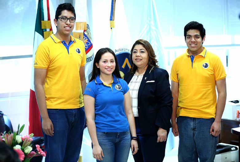 Johanna García Montemayor, Samuel Martínez Tapia y Luis Macías Gamboa, estudiantes de la Preparatoria 7, son quienes portan las preseas por obtener, respectivamente, el primero, segundo y tercer lugar en la categoría A de la competencia.