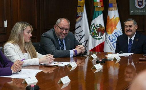 En el encuentro realizado en la Torre de Rectoría de la UANL estuvieron como testigos el Secretario Académico, Jaime Castillo Elizondo; la Secretaria de Relaciones Internacionales, Sandra Nora González Díaz, y el Director de la Facultad de Derecho y Criminología, Mario Garza Castillo.