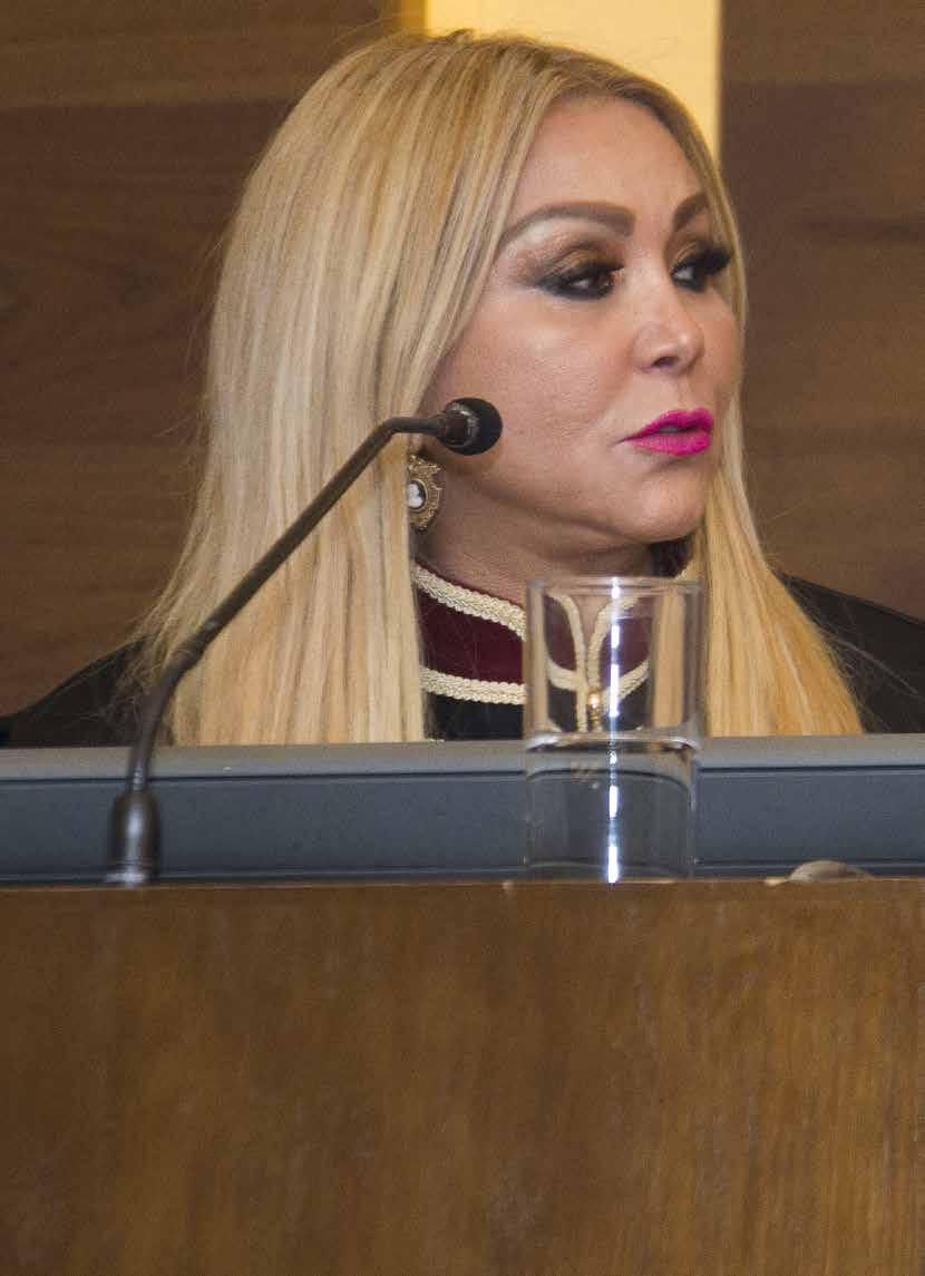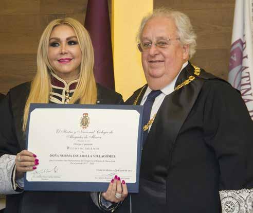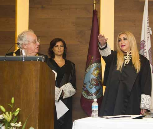 La Mtra. Norma Escamilla Villagómez, Presidente de ésta Asociación, Consejo Directivo 2016-2018, después de los correspondientes Honores a la Bandera, aperturó la Sesión, rindió su Informe Anual de Labores y dirigió a los asistentes un emotivo discurso, en el que sobresalta que “el desarrollo profesional del abogado en México debe ser independiente y que el garante de esa independencia es la normatividad que le permita a este actuar con plena libertad”, un instrumento al que la Mtra. Escamilla denomina la “Defensa a la Defensa”.