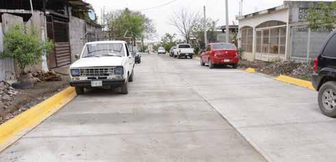 Por otra parte, en la Colonia 10 de Mayo localizada al pie de una zona serrana fue necesario pavimentar a base de concreto hidráulico para garantizar una mayor durabilidad y resistencia de los trabajos, ante los escurrimientos pluviales que se registran en este punto.
