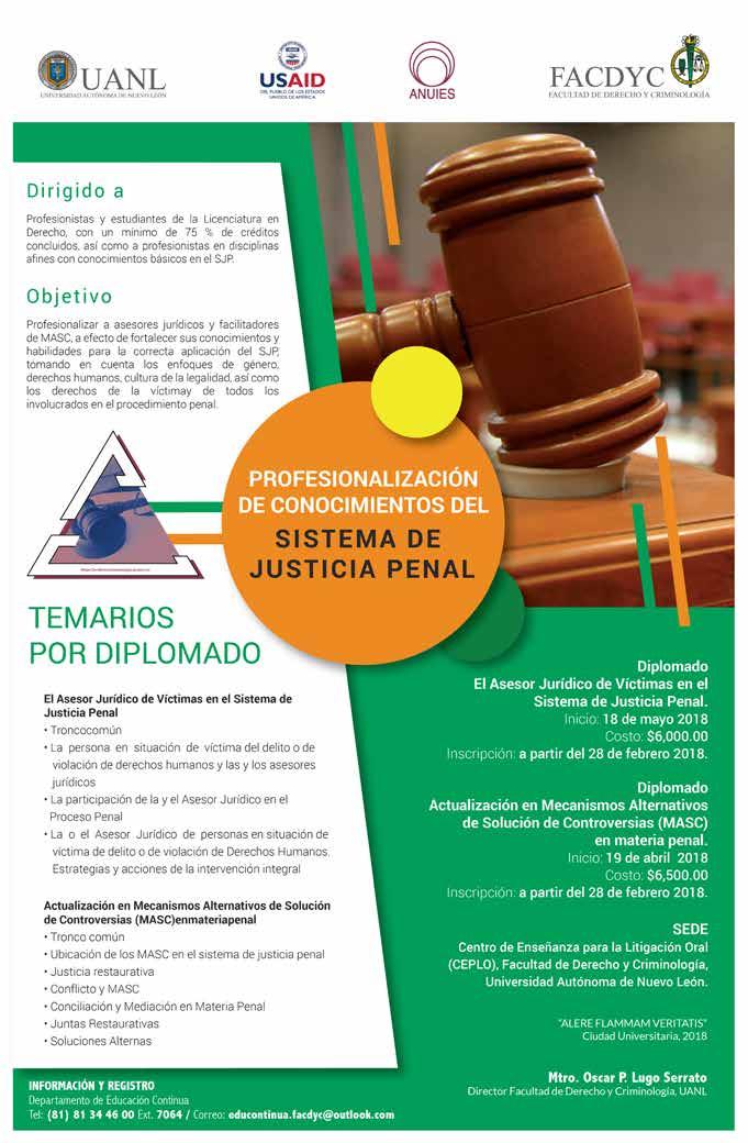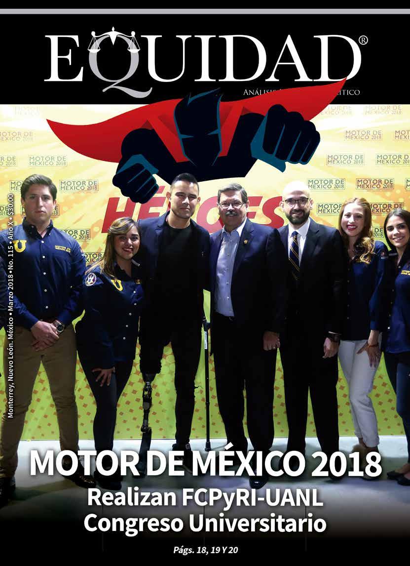 EQUIDAD ANÁLISIS JURÍDICO Y POLÍTICO, Revista Mensual. MARZO 2018. Editor responsable: RAÚL CARRIZALES GONZÁLEZ. Certificado de Reserva de Derechos al Uso Exclusivo del Título EQUIDAD ANÁLISIS JURÍDICO Y POLÍTICO No. 04-2012-041914200700-102, otorgado por el Instituto Nacional del Derecho de Autor, de fecha 19 de abril del 2012 (vigente). Número de Certificado de Licitud de Título y Contenido 16268, expedido por la Comisión Calificadora de Publicaciones y Revistas Ilustradas de la Secretaría de Gobernación, de fecha 14 de Julio del 2014. EQUIDAD, es Marca Registrada con el número 1374245, de fecha 7 de Junio del 2013, expedido por el Instituto Mexicano de la Propiedad Industrial. Domicilio de la publicación: Platón Sánchez 711 Norte, Col. Centro, Monterrey, N. L. C.P. 64000. Impreso por Facsímil Arte Gráfico, S.A. de C.V., con domicilio en Félix U. Gómez No. 2818 Norte. Col. Cementos, Monterrey, N. L. C.P. 64520. Distribuidor: RAÚL CARRIZALES GONZÁLEZ (mismo domicilio de publicación). Tels. 1771-5141 y 811-544-96-46 e-mail: ajc_carrizales@msn.com