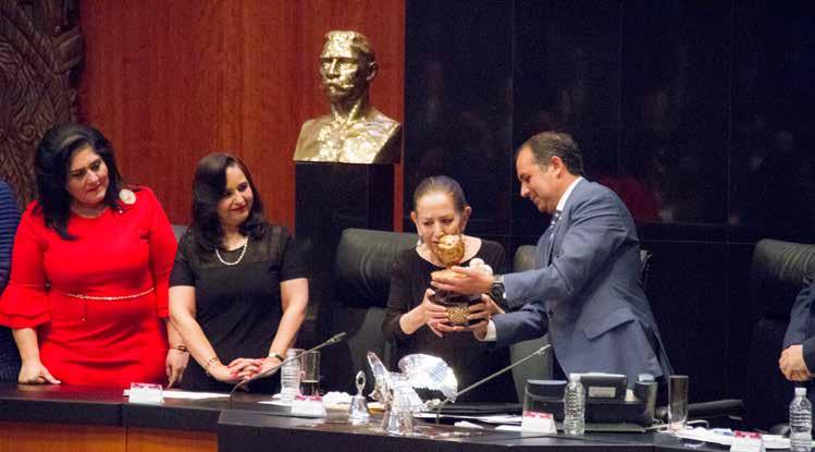La entrega del reconocimiento a Chapa Hernández se realizó en sesión solemne por el Presidente del Senado, Ernesto Cordero Arroyo.