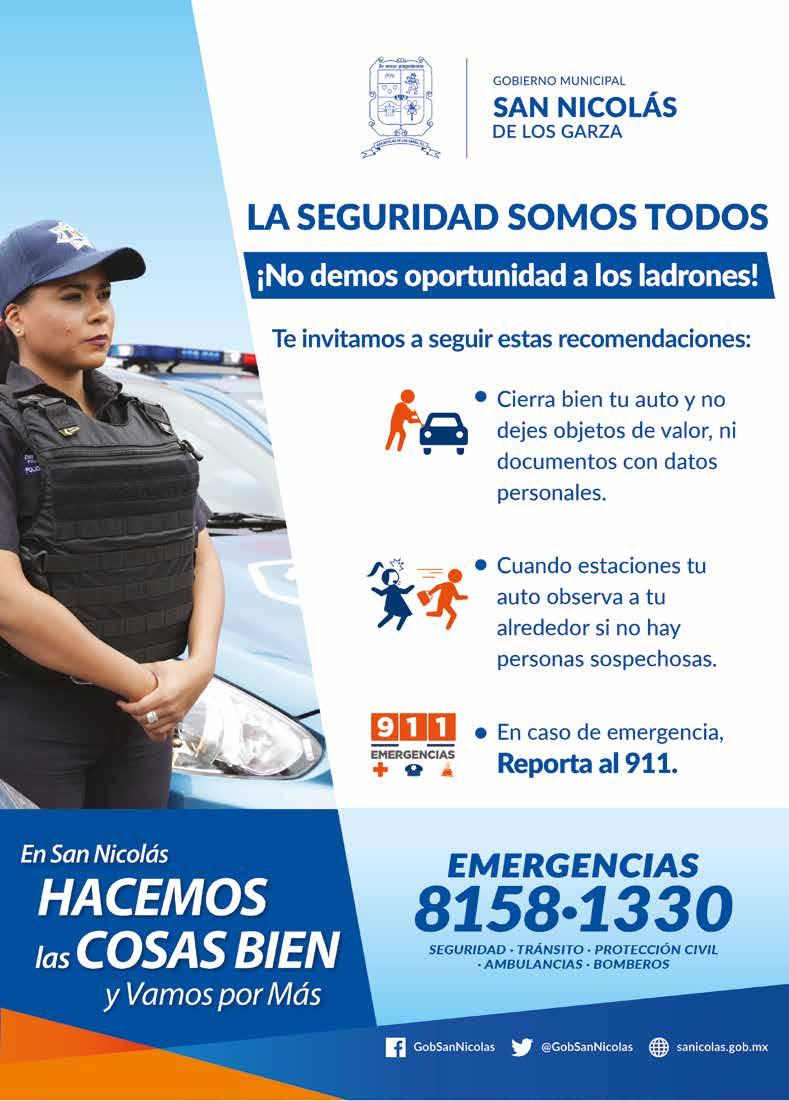 Es de señalar, que el Municipio de Apodaca ha destacado en materia de Seguridad al llegar a más de 780 elementos contratados en la corporación; incrementar su flotilla de patrullas a 174 unidades; al realizar la construcción de tres Centros de Justicia, una delegación de policías, el edificio C4, así como con la renovación de más de 46 mil luminarias con tecnología LED, cámaras de video vigilancia, botones de pánico, y la entrega de equipamiento a policías y tránsitos.