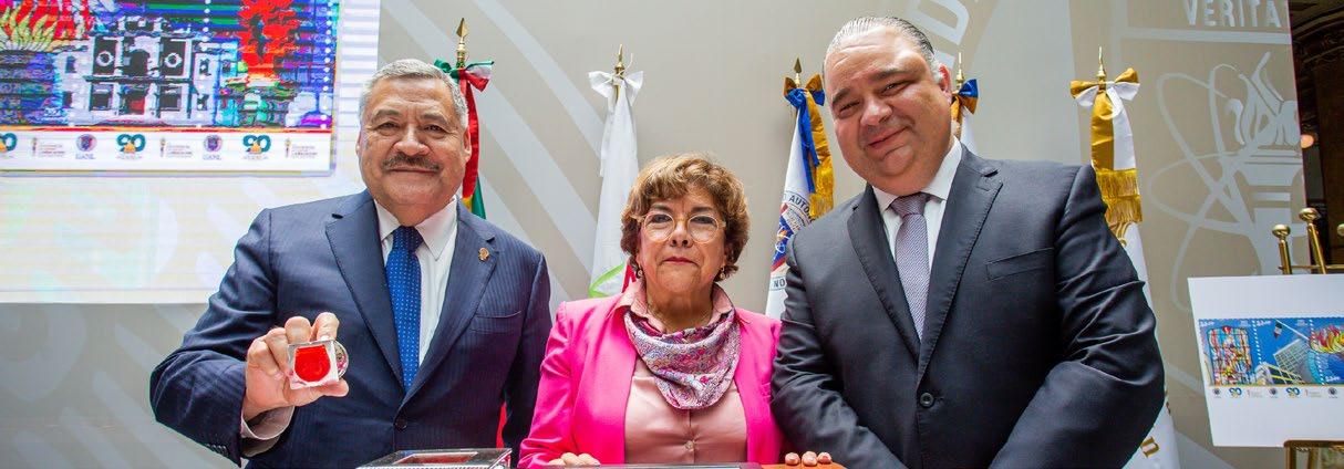 La ceremonia de cancelación de las estampillas estuvo presidida por el Rector Santos Guzmán López, la directora general del Servicio Postal Mexicano, Rocío Bárcena Molina, y el director de Comunicación Institucional y Relaciones Públicas de la UANL, Jorge Humberto Cisneros González.