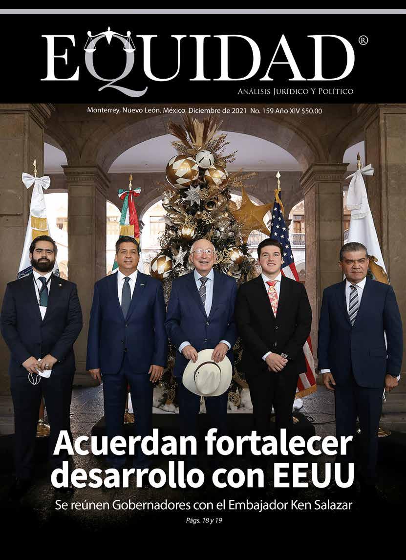 EQUIDAD ANÁLISIS JURÍDICO Y POLÍTICO, Revista Mensual. Diciembre 2021. Editor responsable: RAÚL CARRIZALES GONZÁLEZ. Certificado de Reserva de Derechos al Uso Exclusivo del Título EQUIDAD ANÁLISIS JURÍDICO Y POLÍTICO No. 04-2012-041914200700-102, otorgado por el Instituto Nacional del Derecho de Autor, de fecha 19 de abril del 2012 (vigente). Número de Certificado de Licitud de Título y Contenido 16268, expedido por la Comisión Calificadora de Publicaciones y Revistas Ilustradas de la Secretaría de Gobernación, de fecha 14 de Julio del 2014. EQUIDAD, es Marca Registrada con el número 1374245, de fecha 7 de Junio del 2013, expedido por el Instituto Mexicano de la Propiedad Industrial. Domicilio de la publicación: Vasco de Gama 305 Col. Treviño, Monterrey, N.L., Monterrey, N. L. C.P. 64570. Impreso por Facsímil Arte Gráfico, S.A. de C.V., con domicilio en Félix U. Gómez No. 2818 Norte. Col. Cementos, Monterrey, N. L. C.P. 64520. Distribuidor: RAÚL CARRIZALES GONZÁLEZ (mismo domicilio de publicación). Tel. 8117715141 e-mail: ajc_carrizales@msn.com www.revista-equidad.com
