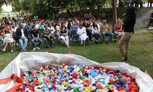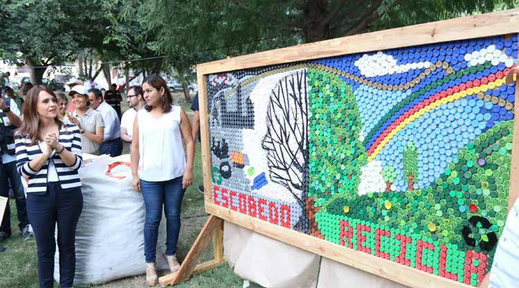 Patricio; segundo, y Las Quintas III, tercero. Durante la premiación, en la que estuvieron presentes el Secretario de Desarrollo Urbano y Ecología, Ignacio Hierro; el Director del Consejo Ciudadano, Johann Saldaña Rodríguez, y representantes de empresas recicladoras participantes, Flores Carrales develó el mural “La Ciudad que quiero”, hecho con 15 mil taparroscas. También se entregaron árboles, se ofertaron productos amigables con el medio