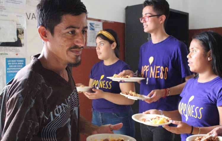 personas que apostadas afuera del comedor esperaban la hora de ingresar para consumir algo de alimentos que les aligerara el hambre contenida por algunos por muchas horas luego de arribar a la ciudad en calidad de inmigrante proveniente de Centroamérica o algún de los estados del sur y centro del País. El impacto de ver tanta gente desde niños, jóvenes madres con bebés en brazos y personas de edad avanzada, indigentes y enfermos solicitando alguna ayuda a los estudiantes antes de su ingreso al comedor, cambió en algunos de ellos sus sonrisas alegres que tenían minutos antes de llegar, y se convirtieron miradas de desconcierto ante la realidad que ahora estaban mirando. Encabezados por su profesora Celina Alvarado, coordinadora del Voluntariado “Hapinesses is” de la Preparatoria N° 2-UANL, los jóvenes se aprestaron para ayudar en la preparación de los platillos, así como en la organización de las filas para el ingreso de las personas, mientras que los futuros periodistas registraban paso a paso lo que ahí sucedía, captando incluso impactantes imágenes de los pequeños que acompañaban a sus papás en su aventura migratoria que