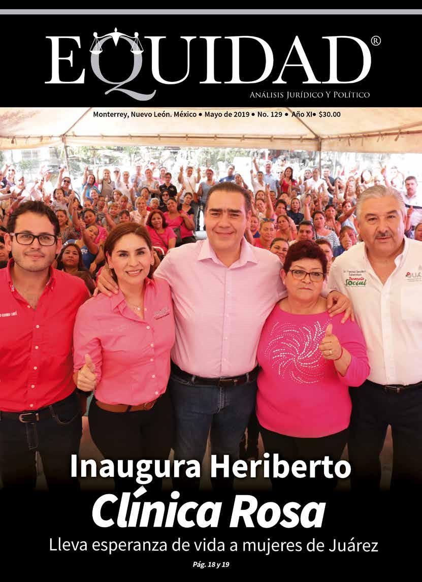 EQUIDAD ANÁLISIS JURÍDICO Y POLÍTICO, Revista Mensual. MAYO 2019. Editor responsable: RAÚL CARRIZALES GONZÁLEZ. Certificado de Reserva de Derechos al Uso Exclusivo del Título EQUIDAD ANÁLISIS JURÍDICO Y POLÍTICO No. 04-2012-041914200700-102, otorgado por el Instituto Nacional del Derecho de Autor, de fecha 19 de abril del 2012 (vigente). Número de Certificado de Licitud de Título y Contenido 16268, expedido por la Comisión Calificadora de Publicaciones y Revistas Ilustradas de la Secretaría de Gobernación, de fecha 14 de Julio del 2014. EQUIDAD, es Marca Registrada con el número 1374245, de fecha 7 de Junio del 2013, expedido por el Instituto Mexicano de la Propiedad Industrial. Domicilio de la publicación: Platón Sánchez 711 Norte, Col. Centro, Monterrey, N. L. C.P. 64000. Impreso por Facsímil Arte Gráfico, S.A. de C.V., con domicilio en Félix U. Gómez No. 2818 Norte. Col. Cementos, Monterrey, N. L. C.P. 64520. Distribuidor: RAÚL CARRIZALES GONZÁLEZ (mismo domicilio de publicación). Tels. 1771-5141 y 811-544-96-46 e-mail: ajc_carrizales@msn.com