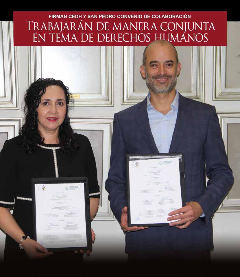 La Presidenta de la Comisión Estatal de Derechos Humanos de Nuevo León (CEDHNL), Sofía Velasco Becerra y el Alcalde de San Pedro, Miguel Treviño de Hoyos, firmaron un convenio de colaboración para trabajar de manera conjunta en materia de derechos humanos. A través del acuerdo, ambas instituciones establecen las bases y mecanismos de coordinación para llevar a cabo acciones orientadas a la protección, observancia, promoción y estudio de estos derechos.