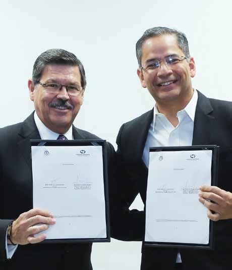 El Rector de la UANL, Rogelio Garza Rivera, y el Director General Adjunto de Banca Emprendedora de Nacional Financiera, Tonatiuh Salinas Muñoz, firmaron el acuerdo en las instalaciones del Centro de Incubación de Empresas y Transferencia de Tecnología (CIETT) de la Universidad.