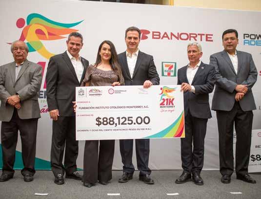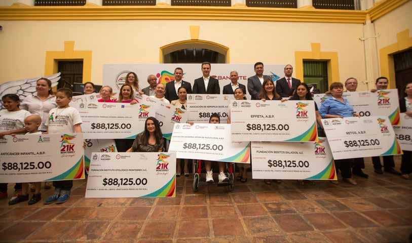 Con el apoyo de tres mil corredores que participaron en la Carrera 21K ¡Sé un Ángel Monterrey 2017!, y que pagaron sus inscripciones, así como de los patrocinadores, el Alcalde Adrián de la Garza Santos, entregó un cheque por 88 mil 125 pesos a cada una de las 14 instituciones civiles que ofrecen atención a niños con problemas de salud.