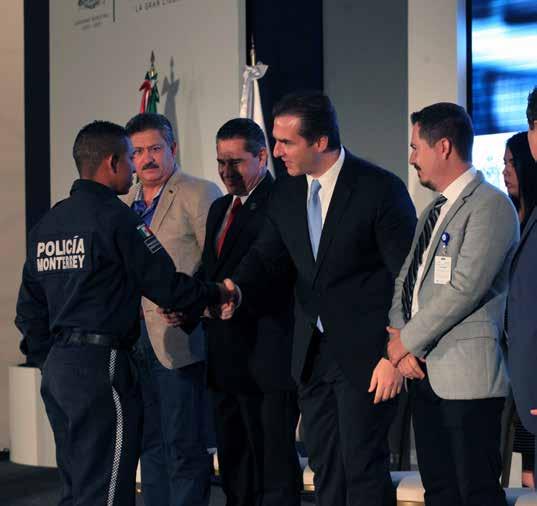 Con una ceremonia que se llevó acabo en el Centro de Convenciones del Pabellón M, y donde se dieron cita autoridades municipales, así como familiares y compañeros de los uniformados que fueron galardonados, el Presidente Municipal acompañado por el Comisario de la Secretaría de Seguridad Pública y Vialidad, Esteban Cantú Montes, entregaron los reconocimientos, así como una medalla y un incentivo económico a los elementos de policía y tránsito quienes día a día arriesgan su vida para salvaguardar la de los demás.