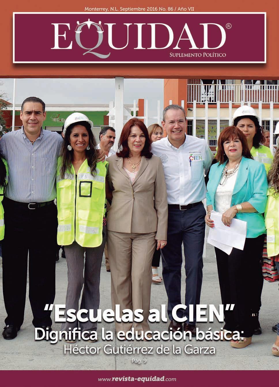 EQUIDAD, Suplemento Mensual, Septiembre 2016. Editor responsable: RAÚL CARRIZALES GONZÁLEZ. Certificado de Reserva de Derechos al Uso Exclusivo del Título EQUIDAD No. 04-2012-041817112100-101, otorgado por el Instituto Nacional del Derecho de Autor, de fecha 18 de Abril de 2012 (vigente). Número de Certificado de Licitud de Título y Contenido 16270, expedido por la Comisión Calificadora de Publicaciones y Revistas Ilustradas de la Secretaría de Gobernación, de fecha 14 de Julio de 2014. EQUIDAD, es Marca Registrada con el número 1374245, de fecha 7 de Junio de 2013, expedido por el Instituto Mexicano de la Propiedad Industrial. Domicilio de la publicación: Platón Sánchez No. 711 Norte, Col. Centro, Monterrey, N.L. C. P. 64000. Impreso por: GRUPO MILENIO, con domicilio Av. Eugenio Garza Sada No. 2245 Sur, Col. Roma, Monterrey, N.L. Distribuidor: RAÚL CARRIZALES GONZÁLEZ (mismo domicilio de publicación) www.revista-equidad.com