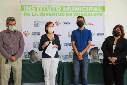 Al reconocer la labor educativa a favor de los jóvenes de Guadalupe, la Alcaldesa aplicó la medida preventiva, con el material de protección que fue elaborado por jóvenes voluntarios del Instituto Municipal de la Juventud.